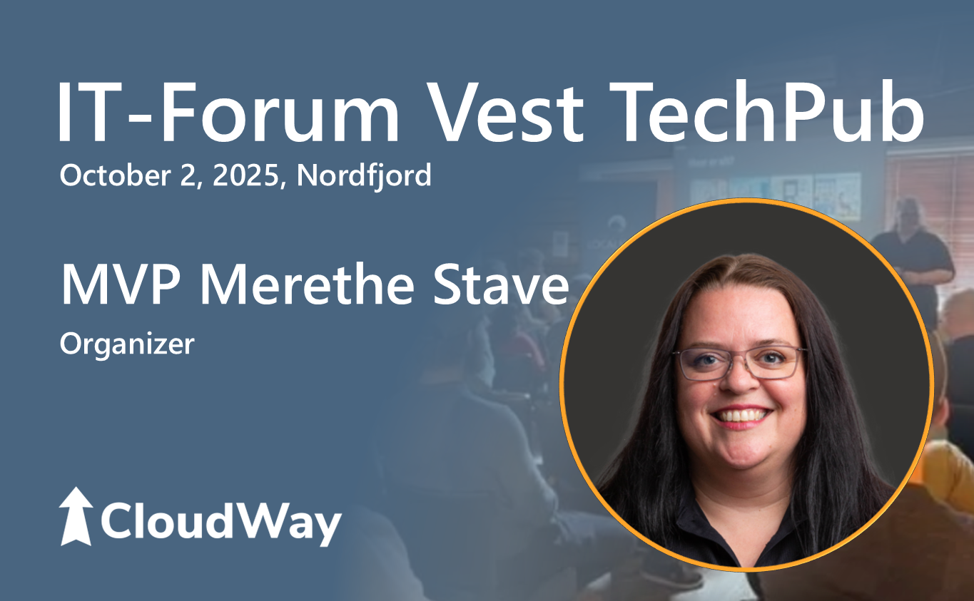 Join our MVP, Merethe Stave at TechPub in Nordfjordeid. She will give the welcome talk and is available to talk about anything Microsoft 365 Copilot success. This is a free event hosted by IT-Forum Vest together with INVIRO. If you are in the area, make sure to sign up, did we mention it was free and there will be pizza?