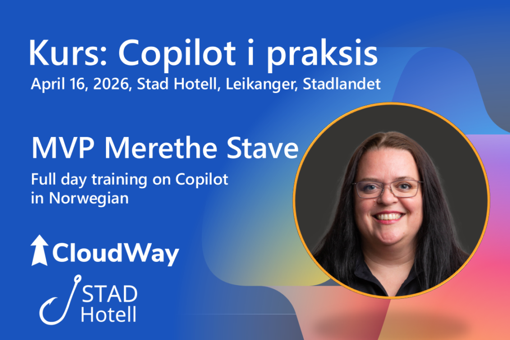 at KPMG Stavanger07/09/2022 @ 12:00 - 16:00 CESTJoin our MVP, Merethe Stave in Stavanger September 7 at MVP Dagen City Edition. She is joined by Norwegian MVPs, Anders Eide and Olav Tvedt and they w...